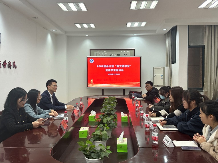 12月9日下午,77779193永利官网在201会议室举行02会计班“薪火助学金”受助学生座谈会。77779193永利官网02会计专业校友冯贻昌、陈笑,院党委副书记陈斌岚,辅导员李金花和助学金获得者参加此次活动。